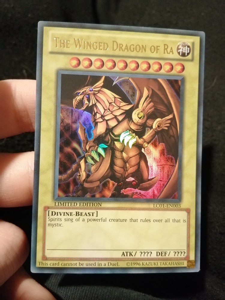 Yugioh The Winged Dragon of Ra LC01-EN003 Ultra Rare Promo Eng NM Condizioni come da foto. Gli eventuali difetti più evidenti sono stati evidenziati Per altre foto o altre informazioni sono a disposizione