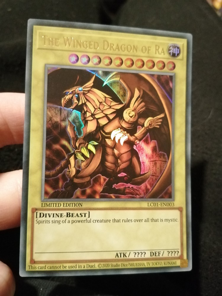 This Yugioh The Winged Dragon of Ra promo reprint is absolutely stunning! The ultra rare foil shines beautifully, and the card arrived in perfect condition, just as pictured. A must-have for any collector or duelist—authentic, crisp, and ready to dominate the battlefield. Highly recommend!