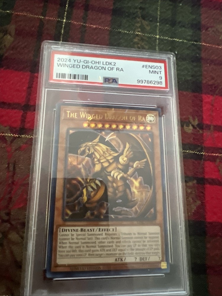 This Yu-Gi-Oh! TCG card is a must-have for collectors and players alike. The winged dragon of Ra is an Ultra Rare card with the LDK2-ENS03 designation. It is graded at PSA 9, ensuring its authenticity and quality. Whether you are building a competitive deck or simply adding to your collection, this card is a valuable addition. Its rarity and impressive grading make it a sought-after item. Don't miss out on the opportunity to own this remarkable card.