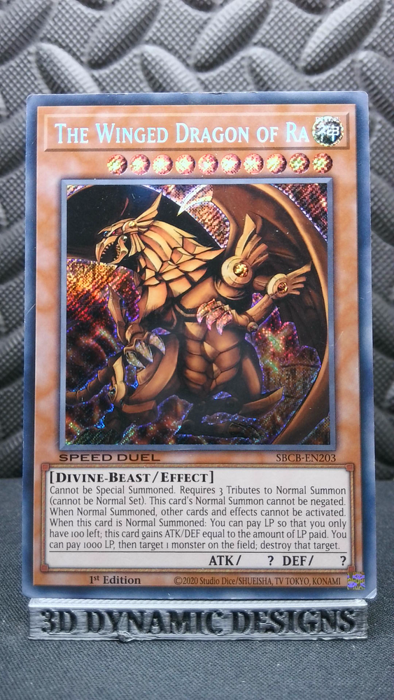 | Yugioh The Winged Dragon of Ra SBCB-EN203 1st Edition Secret Rare LP 🔥 | Card pictured is actual card that will be shipped Cards will come penny sleeved securely placed inside top loader and well protected. Purchases UNDER $20 will be shipped with eBay standard envelope + tracking. Purchases OVER 20 will be shipped USPS First Class Tracking in Padded Bubble Mailer. Will ship same day if possible or next business day at latest. International sales are shipped using eBay Global Shipping Program All payments must be made within 4 days to avoid cancellation. Please contact us for any questions or concern and check out other listings NM M Near Mint/Mint Condition NM Near Mint Condition NM- Near Mint - In between Near Mint and Very Light Play VLP Very Lightly Played Condition LP Lightly Played Condition PL Played Condition MP Moderately Played Condition DMG Damaged Condition