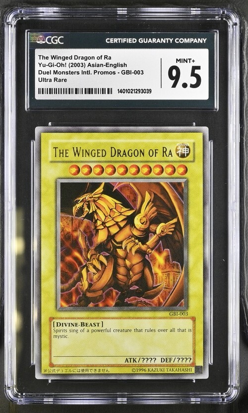 Yugioh - The Winged Dragon of Ra Ultra Rare card, GBI-003 NM, is a highly sought-after collectible for any Yu-Gi-Oh! TCG enthusiast. Illustrated by Kazuki Takahashi and manufactured by Konami, this English-language card features standard size dimensions and is suitable for ages 6 and up. A valuable addition to any card collection, this autographed card is a must-have for fans of the iconic trading card game. The item you are bidding on, is the item in the photos, please review photos for item condition. Important: You will only receive the graded card pictured in this listing, and not the card stand. We encourage all buyers to review photos of our items for condition. If you have any questions, please feel free to reach out and we will respond as quickly as possible. When we have multiple copies of an item available, we will always try and provide the best available packaging on a first come first serve basis, so order now! Additional Shipping Charges:**International buyers – please note: Import duties, taxes, and charges aren't included in the item price or postage cost. These charges are the buyer's responsibility. *****International buyers please, provide your contact phone number for customs to speed up shipping*** Additional Important Information: We cannot honour/honor promotional offers, from original release of items. This is including but, not limited to "Mail in" Promotions" Items which were originally "scented" cannot be expected to retain their scent indefinitely. As such, we cannot offer refunds for scented items based on claims of this nature. If you have questions regarding any of the information from this listing or regarding the item itself, please reach out and we will respond as quickly as possible. All items will be packed with love and care from us to you. Please check out our other listings. (Internal Use: Inv Location: Card Box 5)
