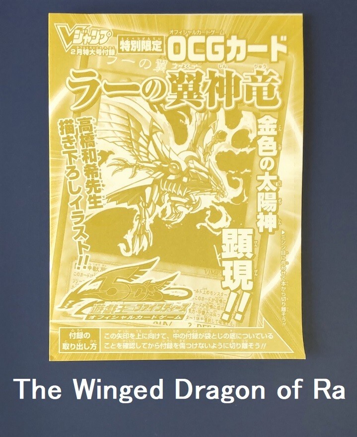 Yugioh The Winged Dragon of Ra VJMP-JP046 Promo Japanese This card is a promo card of the monthly magazine "V Jump", sealed, unopened. It will be sent after put into a hard case shown in sample photos. I have this item in hand and will be able to ship faster. International Buyers : ・ Import duties, taxes and charges are not included in the item price or shipping charges. These charges are buyer’s responsibility. ・ Please check with your country’s customs office to determine what these additional costs will be prior to bidding/buying. Thank you for looking! Enjoy shopping!