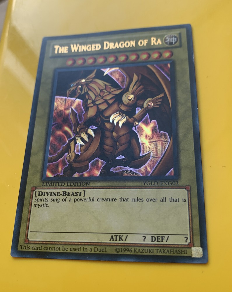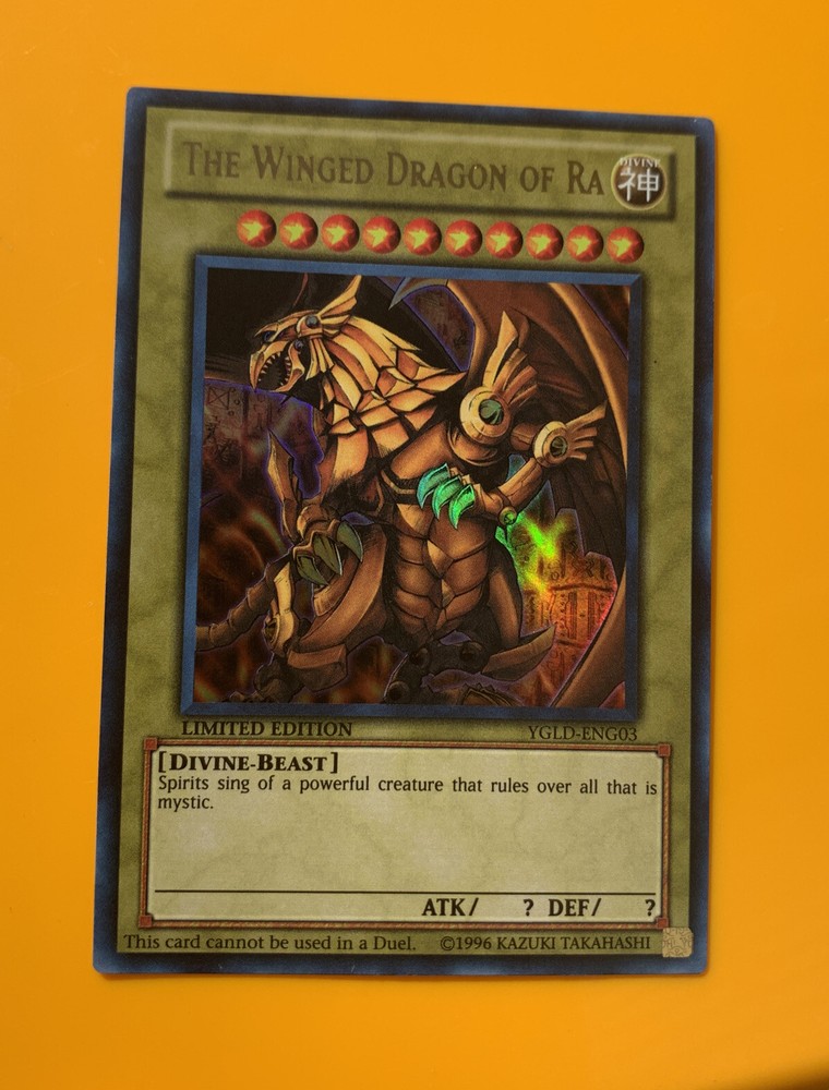 Yugioh The Winged Dragon of Ra YGLD-ENG03 Ultra Rare Limited Edition MINT. see pics for condition ships in plastic protector