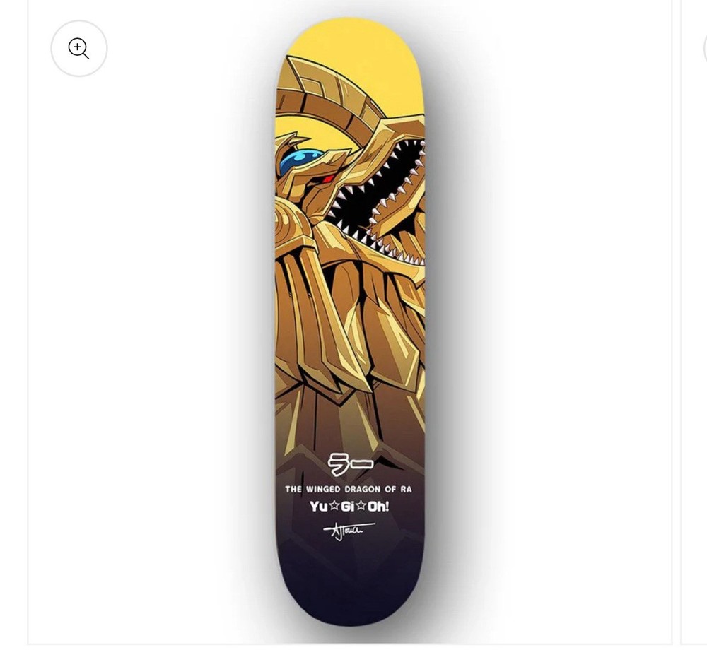 This Yugioh Winged Dragon Of Ra Skate Deck is a must-have for any skateboarding enthusiast. The deck features a stunning design inspired by the legendary Yugioh card, making it a great addition to any collection. Crafted in the United States, this skateboard deck is made of high-quality materials, ensuring durability and optimal performance. The deck is also signed by the creator, adding an exclusive touch to your collection. Whether you're a beginner or an experienced skater, this deck is perfect for you. It's ideal for outdoor sports, skateboarding, and longboarding. Get ready to showcase your love for Yugioh and elevate your skateboarding experience with this Winged Dragon Of Ra Skate Deck.