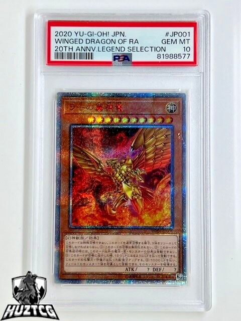 Welcome to HuzTCG ! You are bidding on the following Yugioh PRODUCT (Note all prices are the best on eBay and all cards are brand new booster fresh and in English): 1x Winged Dragon of Ra - WP01-JP001 - 20th Secret Rare - PSA 10 Shipping: All cards will be dispatched within a sleeve and sent in padded packaging within 1-2 working days after purchase is completed. All orders will be sent via Royal Mail and free shipping is offered to all UK customers. About us: We are a fast growing, trusted company made from players/collectors and gaming enthusiasts just like all of you! You can rest assured that we have a passion for all things cards and game related and our passion translates into the service we want to provide. Have peace of mind that we will do everything we can to be a brand you can trust! Our Service Promise: We aim to provide 5* service to all our customers and if you feel for any reason you we have fell short on this, then contact us and we will do our best to rectify this. All cards are in NM condition or better.