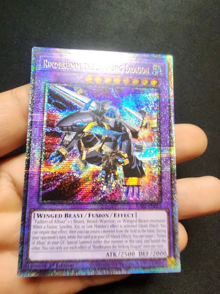 Rindbrumm the striking dragon Card rarity- Quarter Century Secret Rare Card set- RA02-EN025 Card Edition- 1st Edition Card condition- Near mint condition captured in pictures as best as possible **All Cards are sent in a top loader and sleeve, Thanks for looking** ***shipping*** ** Most cards are sent out the next day, or if purchased on the weekend, they are sent out first thing Monday. ***Holiday purchases cards will go out, the day after the holiday is over***. Thanks for looking!!**