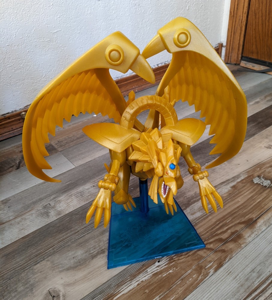 This golden beast is absolutely stunning! The detail is incredible and it stands proudly on its blue base. A true centerpiece for any Yu-Gi-Oh fan's collection.