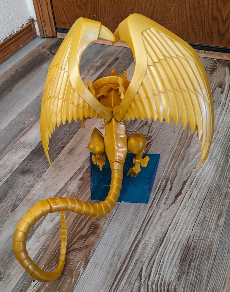 Brought to from 1996, is the Yu Gi Oh this big golden boy, Winged Dragon of Ra. Model (or figure) is complete, including the translucent blue base. See the pictures for condition. No box. Thanks for s...