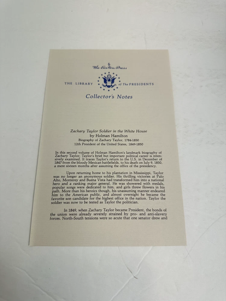 Zachary Taylor Soldier Of Republic & White House Easton Press 2 Vol Set Some wear on the cover Please see pictures for more details and feel free to ask questions Shipped USPS media mail...