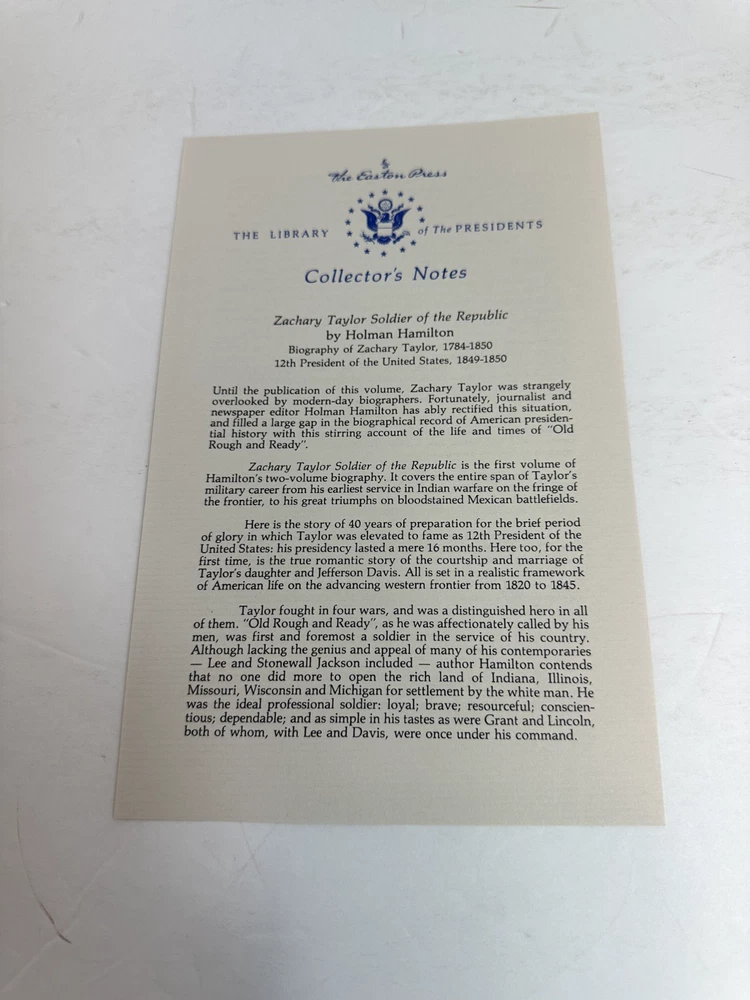 Zachary Taylor Soldier Of Republic & White House Easton Press 2 Vol Set Some wear on the cover Please see pictures for more details and feel free to ask questions Shipped USPS media mail