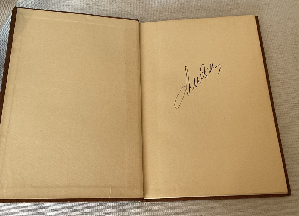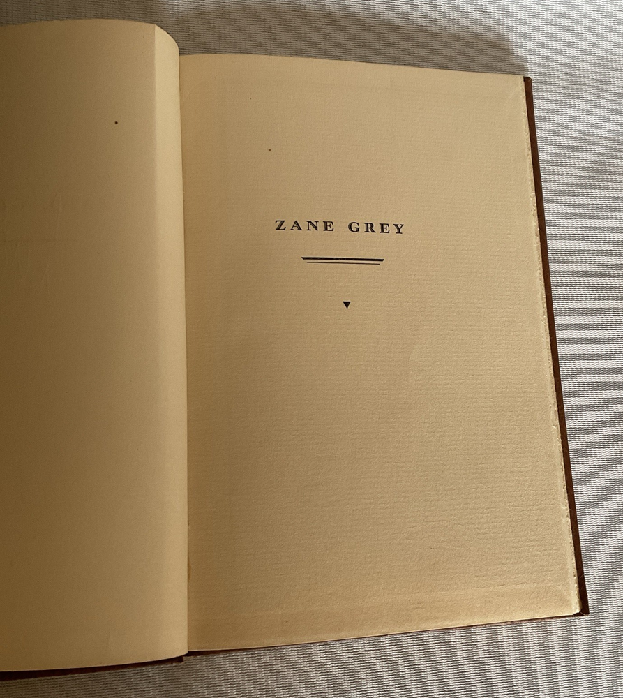 Zane Grey: The Man and His Work. An Autobiographical Sketch. Critical Appreciations & Bibliography - Signed by Loren Grey Title: Zane Grey: The Man and His Work. An Autobiographical Sketch. Critical Appreciations & Bibliography - Signed by Loren Grey Publication: New York: Harper and Brothers, 1928 Edition: First printing Description: First printing. Hardcover. Small 7.75 x 5.5 inches, stiff imitation leather covers, Signed by Grey's son Loren, name only. Book is in very good condition for it's age the title has faded on the book cover - see photos, there is a slight crease on the opening page - pictured across from name only, foxing on title and picture pages on edges - see photos, bottom corner bends in - see photo Please review photos as what is shown is what you are receiving - this is from an estate - All Sales Are Final