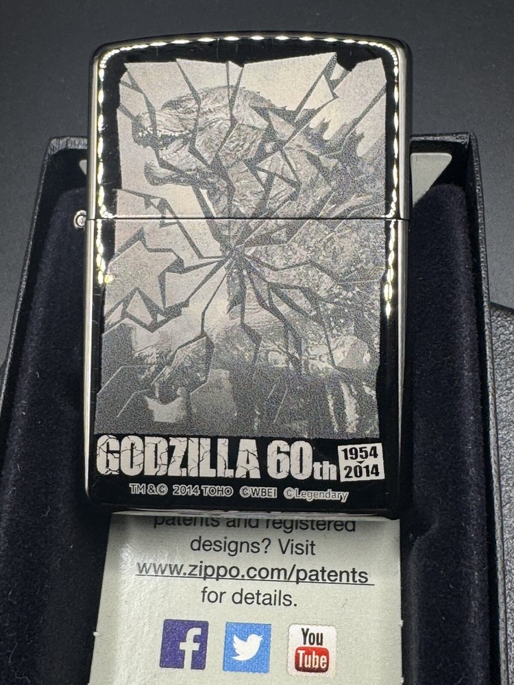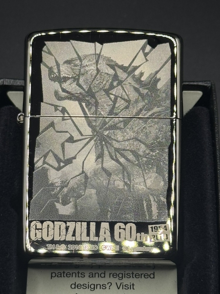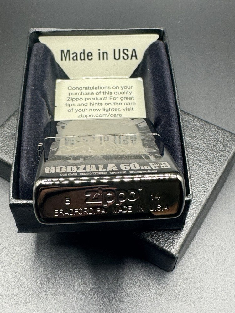 This Zippo lighter is a must-have for any Godzilla fan! The Hollywood black engraving looks sleek and detailed, celebrating the iconic monster's 60th anniversary. Brand new and unfired, it's in perfect condition—ready to light up your collection or make an awesome gift. The Japanese craftsmanship shines through, making it a standout piece. Love the weight and classic Zippo feel—definitely worth adding to your stash!