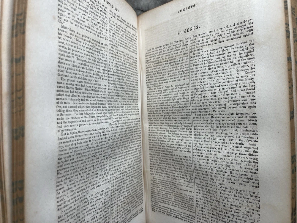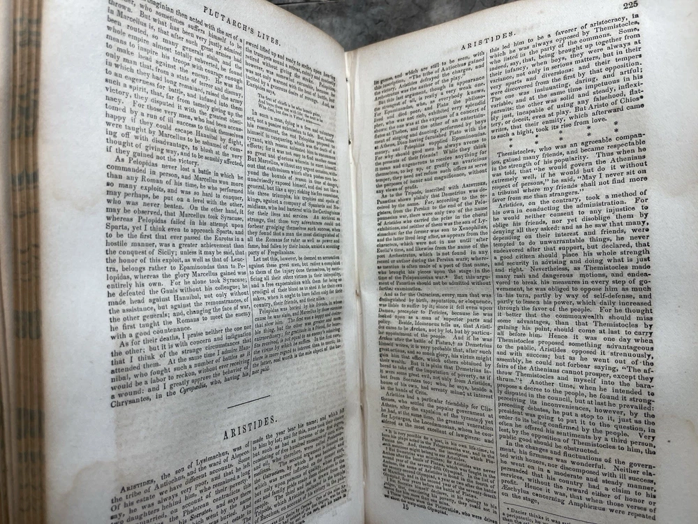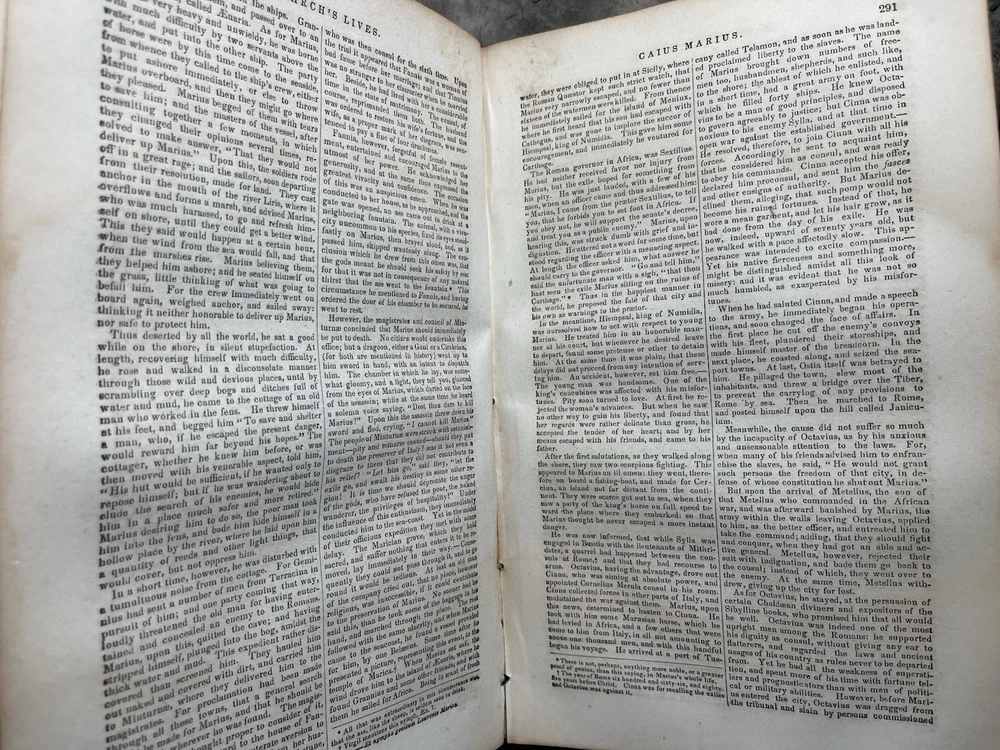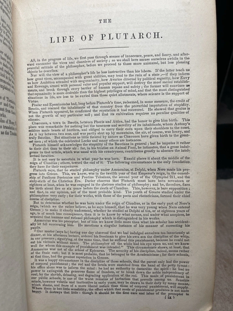 Dive into the richness of historical insight with "c. 1857 - Plutarch's Lives Translated from the Original Greek; with Notes," a compendious exploration of biography and autobiography rendered in English. Published by Brannan and Morford, this full-leather edition speaks volumes of the literary craftsmanship of the mid-19th century, offering readers a window into the past through the lives of the eminent. Authored by the erudite John Longhorne, D.D., and William Longhorne, A.M., this original work from 1857 emerges from Cincinnati, adding to its historical value. It stands as a testament to the enduring allure of classical history, making it a prized addition to any collection focused on the topic or a noteworthy piece for those appreciating antiquarian and collectible books. Please note the age and condition of this book in the photos.