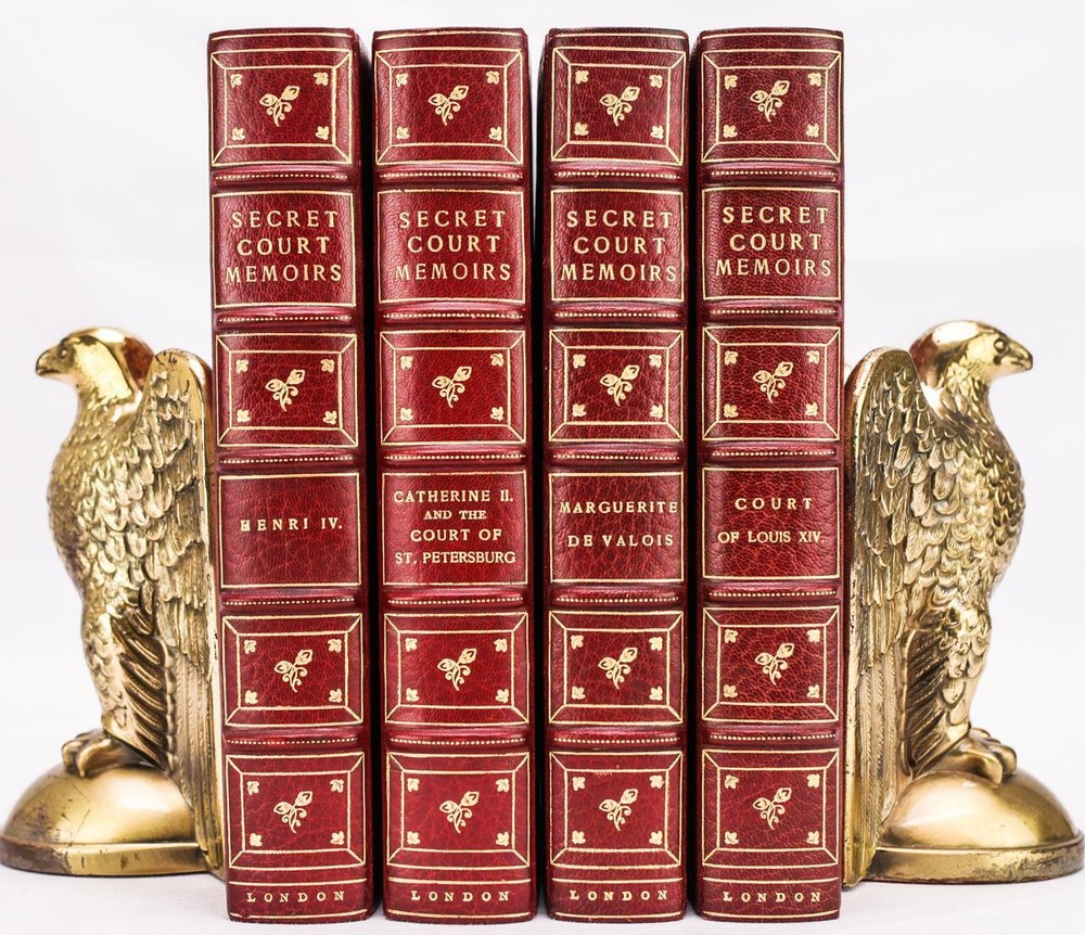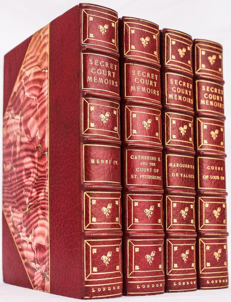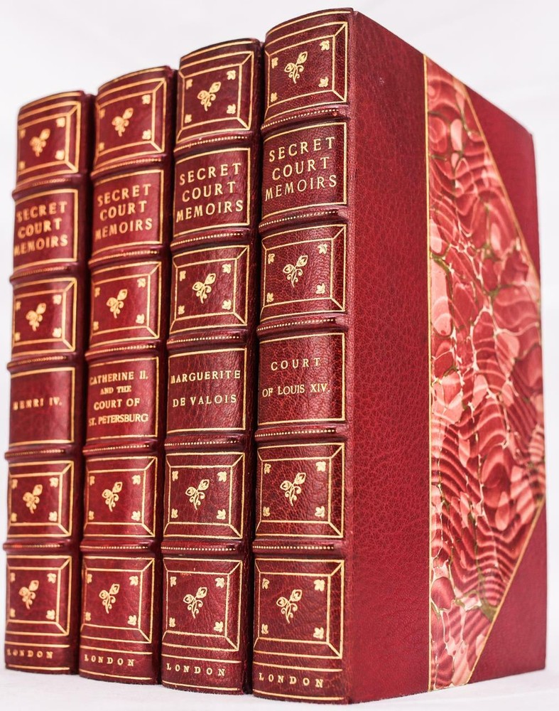 THIS FOUR VOLUME SET (PART OF A LARGER SET) IS IN NEAR FINE CONDITION BEAUTIFULLY BOUND BY THE PUBLISHER IN 3/4 CRUSHED MOROCCO WITH BRIGHT GILT RULE TO BOARDS, SIX COMPARTMENTS AND FIVE RAISED BANDS TO SPINES WITH BRIGHT GILT DETAILS AND TITLE. BINDING AND HINGES ARE VERY GOOD, MARBLED END PAPERS AND PASTE DOWNS. NO LOOSE OR MISSING PAGES, PAGES ARE BRIGHT AND CLEAN, WITHOUT MARKS OR FOXING. NICELY ILLUSTRATED - COLOR FRONTISEPIECES, BOOKS MEASURE 9"x6". LIMITED EDITION-500 COPIES, NOT DATED (CIRCA 1900). A BEAUTIFUL SET IN REMARKABLE CONDITION. c1900 Secret Court Memoirs Limited Edition Illustrated Color Plates Fine Leather c1900 Secret Court Memoirs Limited Edition Illustrated Color Plates Fine Leather Description RARE!!! circa 1900 LIMITED EDITION PROFUSELY ILLUSTRATED FINE LEATHER BINDING #401 OF 500 COPIES THIS FOUR VOLUME SET (PART OF A LARGER SET) IS IN NEAR FINE CONDITION BEAUTIFULLY BOUND BY THE PUBLISHER IN 3/4 CRUSHED MOROCCO WITH BRIGHT GILT RULE TO BOARDS, SIX COMPARTMENTS AND FIVE RAISED BANDS TO SPINES WITH BRIGHT GILT DETAILS AND TITLE. BINDING AND HINGES ARE VERY GOOD, MARBLED END PAPERS AND PASTE DOWNS. NO LOOSE OR MISSING PAGES, PAGES ARE BRIGHT AND CLEAN, WITHOUT MARKS OR FOXING. NICELY ILLUSTRATED - COLOR FRONTISEPIECES, BOOKS MEASURE 9"x6". LIMITED EDITION-500 COPIES, NOT DATED (CIRCA 1900). A BEAUTIFUL SET IN REMARKABLE CONDITION. !!!CLICK HERE!!! Visit My eBay Store TO SEE ALL THE BOOKS WE HAVE FOR SALE!!! IF YOU LIKE WHAT YOU SEE THAN SAVE US TO YOUR FAVORITES BY CLICKING HERE. Add me to your Favorite Sellers RARE ANTIQUARIAN BOOKS CAN BE FRAGILE AND NEED TO BE HANDLED WITH CARE. About us: Reagan's Rare Books is a purveyor of Antiquarian books primarily from the 18th and 19th centuries. We love antique books! We search all over the country for the finest rare books, looking for those with beautiful bindings and in great condition so that we can offer you, the customer, a truly rare one of a kind collectible. Paypal Preferred. Please make payment arrangements within 48 hours of winning your auction. We reserve the right to re-list items not paid within 5 days. Shipping *To Insure That Your Package arrives without any Problems , Please Double Check to Make Sure That The Address You Have Selected in eBay Is Correct. All books are carefully bubble wrapped and packed in a box with adequate packing peanuts to prevent any damage during shipment. All books are shipped with delivery confirmation and tracking. Books over $75.00 are automatically insured. RETURNS 100% Satisfaction Guaranteed. Returns accepted for any reason within 30 days of receipt. PLEASE CHECK MY OTHER LISTINGS. POSTING NEW RARE BOOKS DAILY/WEEKLY. Pictures sell! Auctiva offers Free Image Hosting and Editing. 300+ Listing Templates! Auctiva gets you noticed! The complete eBay Selling Solution. Track Page Views With Auctiva's FREE Counter
