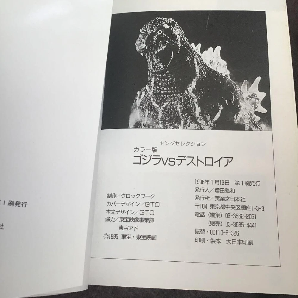 color version godzilla vs destoroyah film story thorough analysis complete story Description Color version Godzilla vs. Destroyah Film Story Thorough Analysis Complete Story Godzilla Legend This book was published when the movie was released. First edition published in 1996 Shipping FedEx International Buyers - Please Note: Import duties, taxes, and charges are not included in the item price or shipping cost. These charges are the buyer's responsibility. Please check with your country's customs office to determine what these additional costs will be prior to bidding or buying. We do not mark the value of goods below the selling price on invoices, or mark goods as "gifts". There are illegal according to Customs regulations. Thank you for your understanding.