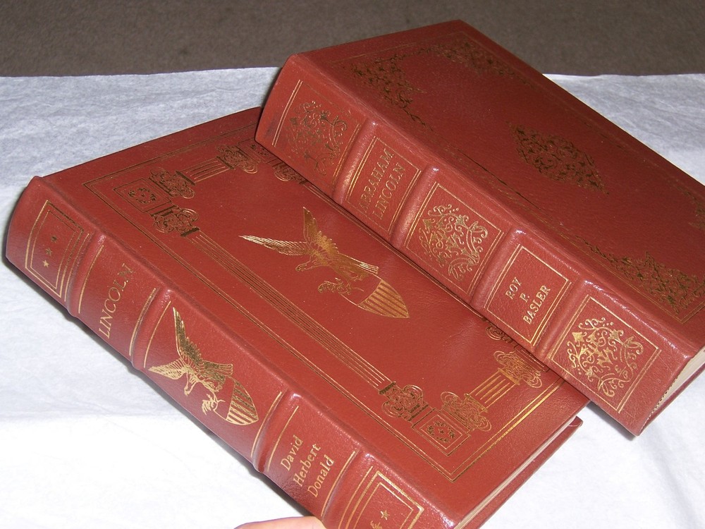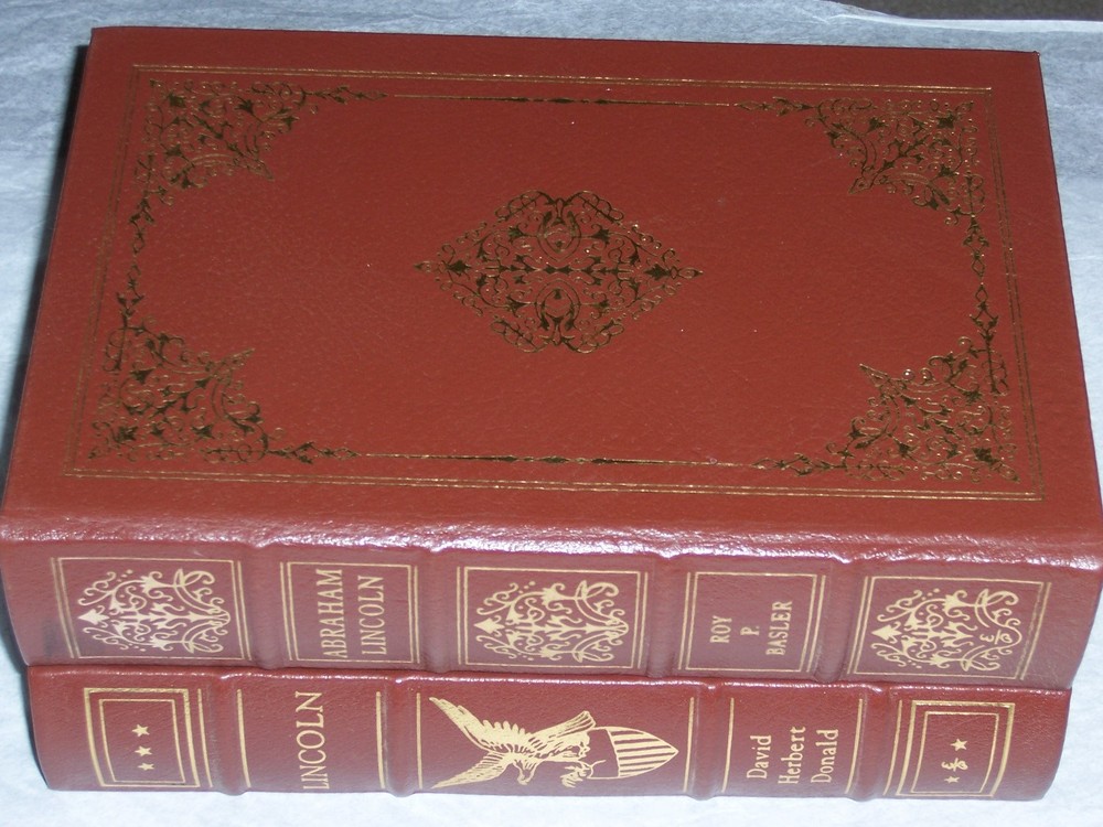 Books from Easton Press Bound in premium leathers, distinctive cover design, hubbed spine accented in 22-karat gold Endsheets of rich moire fabric, permanent satin ribbon page marker Thread sewn pages for strength and durability, gilded page edges for beauty and protection Handsome readable typefaces, beautiful illustrations, archival-quality acid-neutral paper TITLE LINCOLN & SPEECHES AND WRITINGS, 2 vols AUTHOR David Herbert Donald & Roy Basler MORE DETAILS LINCOLN David Herbert Donald ABRAHAM LINCOLN: HIS SPEECHES AND WRITINGS, Edited with critical and analytical notes by Roy P. Basler, preface by Carl Sandburg DESCRIPTION Like new condition, unread, clean inside, tight hardcover binding SHIPPING Books will be packed safely, and shipped via USPS Media Mail with tracking number.