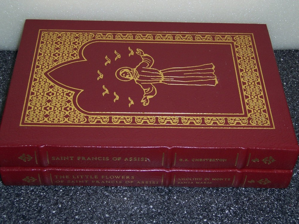 Books from Easton Press Bound in premium leathers, distinctive cover design, hubbed spine accented in 22-karat gold Endsheets of rich moire fabric, permanent satin ribbon page marker Thread sewn pages for strength and durability, gilded page edges for beauty and protection Handsome readable typefaces, beautiful illustrations, archival-quality acid-neutral paper TITLE St. Francis of Assisi, 2 vols AUTHOR --- MORE DETAILS The Little Flowers of St. Francis of Assisi, Ugolino Di Monte Santa Maria, edited by and adapted from a translation by Heywood St. Francis of Assisi, G. K. Chesterton, foreword by Joseph F Girzone DESCRIPTION Like new condition, unread, clean inside, tight hardcover binding SHIPPING Books will be packed safely, and shipped via USPS Media Mail with tracking number.