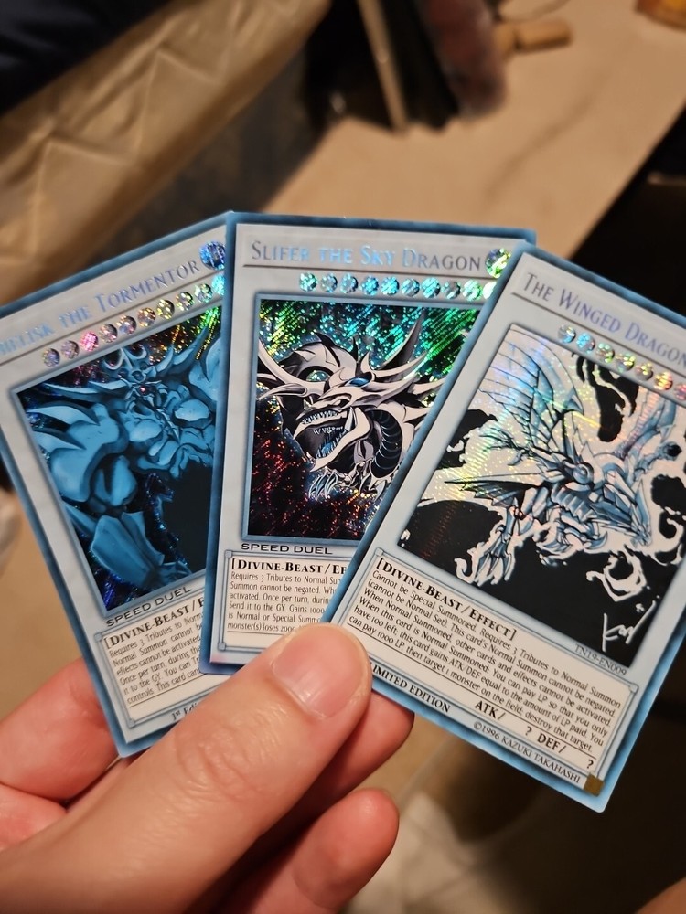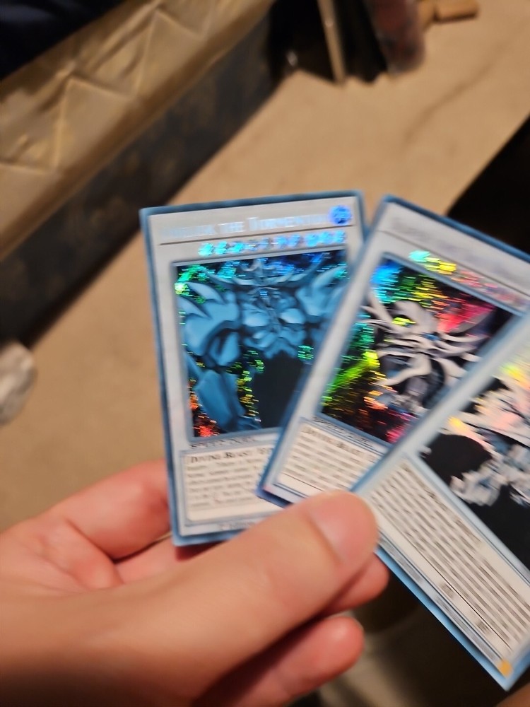 This altered Yu-Gi-Oh! God card set is a must-have for collectors! The unique ghost/albino effect achieved through sun bleaching gives these cards a rare, one-of-a-kind look. While they show some wear and warpage, the craftsmanship and time putken to create this faded style make them stand out. Perfect for display, though tournament legality may vary. Grab this unique set before it's gone!