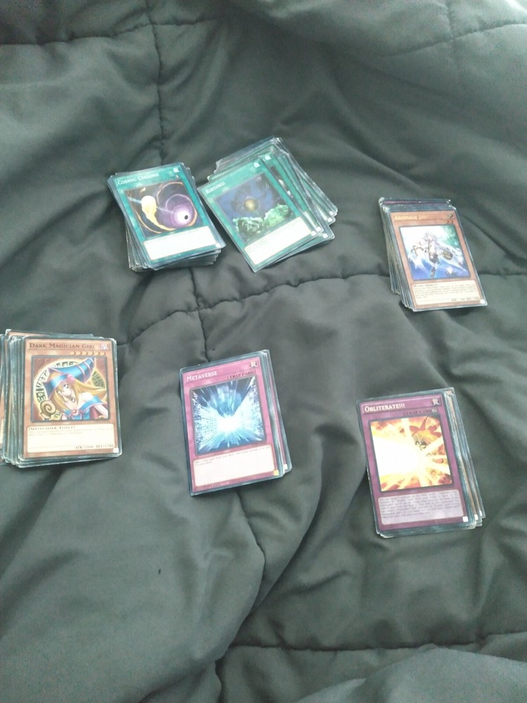 This is a set of Yu-Gi-Oh cards that I had bought about two to three years ago. I have kept them decently good and some of them about mint condition. These cards come from a variety of different sets including Legend Of The Crystal Beasts Structure Deck, Legendary Decks II, etc. If you purchase this set of cards, you won't be disappointed by them. It has some rares like Obelisk The Tormentor, Toon Dark Magician Girl, Elemental Hero Neos, etc. Some of them are holo rares too, so keep that in mind