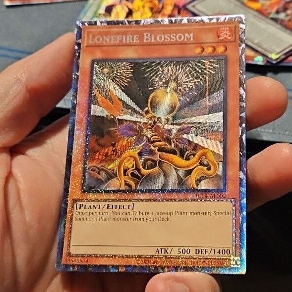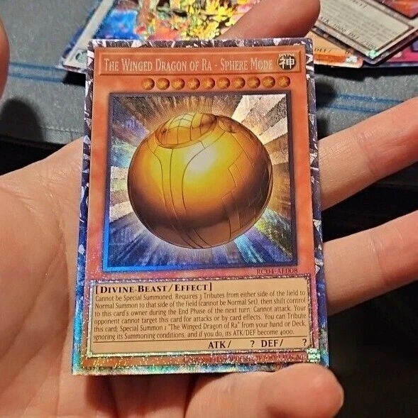 these cards are asian english. the set is rc04. they are printed for the ocg and can not be used in the tcg. in comparison to the tcg, asian english printed cards have much more defined textures and foiling. you can see certain swirls, cones, rays or foiling that cant be seen on tcg versions. this makes these cards much more beautiful than their tcg counter parts in my opinion. again, these cards cant be used in tcg play; only in ocg play. ive provided some pics, but not all the cards as it would take too long. all of these cards have the same cr patterns where the rays are coming out. there are a few cards where the art in the middle is bigger so the rays arent as visible (lava golem and egyptian god slime). but overall, the cr pattern is the same. these are all unlimited edition. some of these cards may come a bit warped. u are buying this assuming u may get a warped card. no returns at all. if u want something i dont have listed, msg me. i may have it. tags prismatic 0123456789