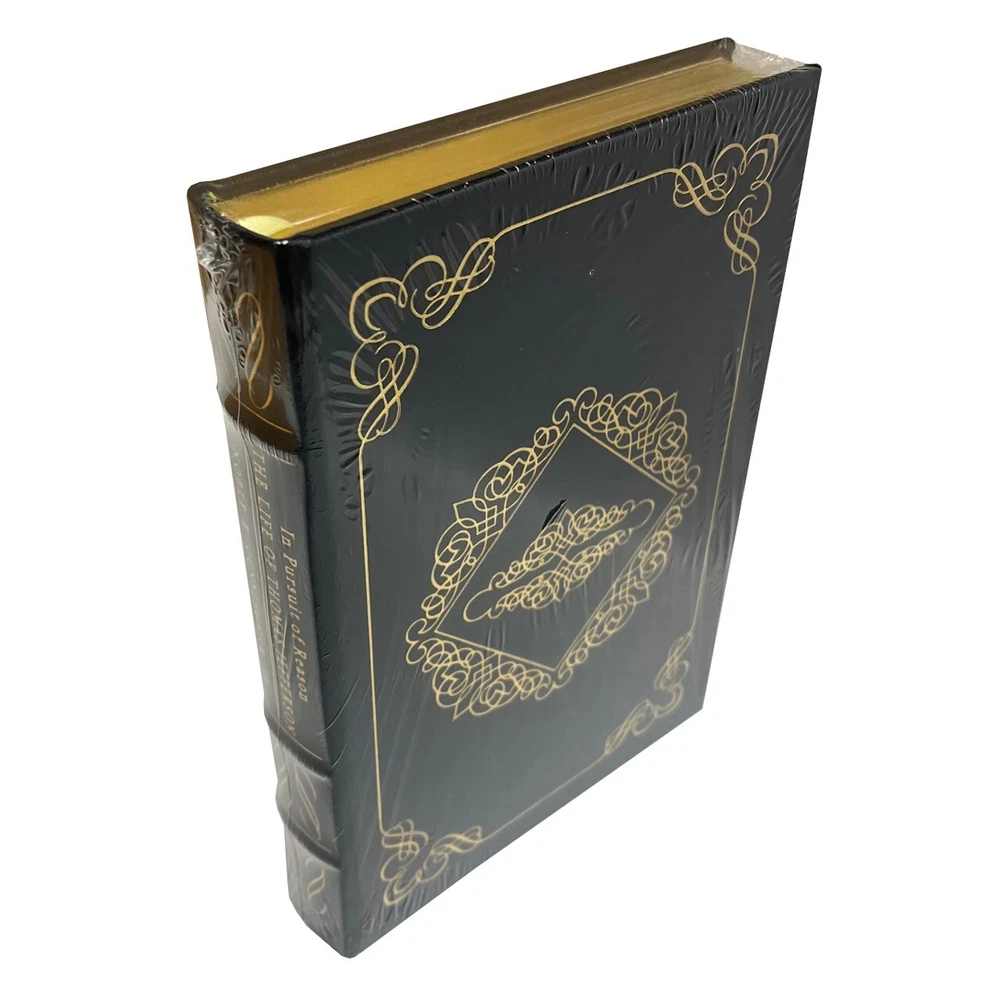 Thank you for visiting Find more great books in our Easton Press Library Easton Press, Norwalk CT. 1992 Noble E. Cunningham, Jr. "In Pursuit of Reason: The Life of Thomas Jefferson" Limited Edition. Fuil gunuine leather. No dust-jacket as issued. A major contribution. Washington Post The authoritative single-volume biography of Thomas Jefferson, perhaps the most significant figure in American history. He was a complex and compelling man: a fervent advocate of democracy who enjoyed the life of a southern aristocrat and owned slaves, a revolutionary who became president, a believer in states' rights who did much to further the power of the federal government. Drawing on the recent explosion of Jeffersonian scholarship and fresh readings of original sources, IN PURSUIT OF REASON is a monument to Jefferson that will endure for generations. About the author Noble E. Cunningham, Jr., one of the foremost scholars of the life and thought of Thomas Jefferson, was born in 1926 in Evans Landing, Indiana, he served with the U.S. Army, 1944-1946, and received a B.A. from the University of Louisville in 1948. He earned his M.A. (1949) and Ph.D., with honors, from Duke University (1952). He taught at Wake Forest College and the University of Richmond before joining the history department of the University of Missouri at Columbia in 1964. There he served as associate professor, full professor, the Byler Distinguished Professor (1980-1981), the Frederick A. Middlebush Professor (1986-1988), and the Curators Professor of History (1988-1997). In 1997 he became Curators Professor of History Emeritus. Features Includes all the classic Easton Press qualities: * Premium Leather * Silk Moire Endleaves * Distinctive Cover Design * Hubbed Spine, Accented in Real 22KT Gold * Satin Ribbon Page Marker * Gilded Page Edges * Long-lasting, High Quality Acid-neutral Paper * Smyth-sewn Pages for Strength and Durability * Beautiful Illustrations Thank you for visiting Find more great books in our Easton Press Library