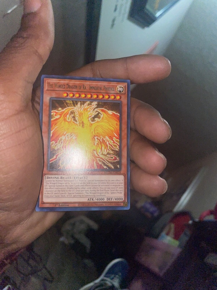 "The Winged Dragon of Ra" is a powerful card in the Yu-Gi-Oh! TCG, classified as a divine beast. This card is highly sought after by collectors and players alike for its impressive abilities and rarity. With a striking design and impressive gameplay mechanics, it is a valuable addition to any Yu-Gi-Oh! collection.