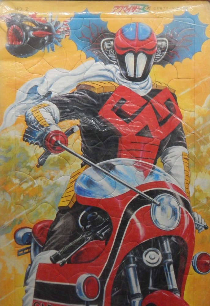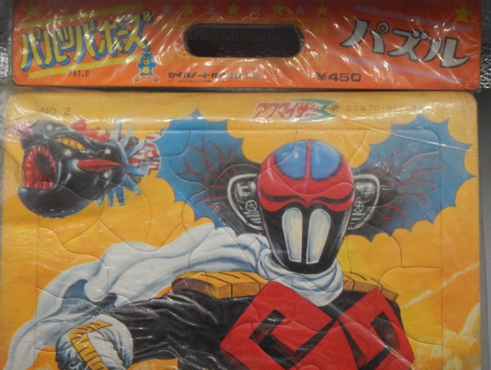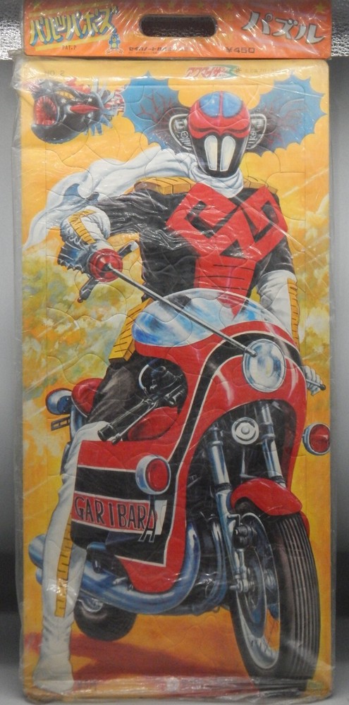 Vintage 1970's Japanese Akumaizer 3 Zabitan Garibara Motorcylce Frame Tray puzzle with original bag and header card! This large puzzle measures a tall and impressive 20" tall and 9" wide, and features the Tokusatsu hero gallantly riding upon his motorcycle; rapier in hand! The puzzle displays well, showing little age related wear or discoloration. The original header card displays well, however does show some wear, with denting/veining on the upper right hand side. The baggie does show some age related discoloration, and is opened at the bottom seam. Overall a great addition to any vintage Tokusatsu hero collection! See pics for details. Check our other auctions for similar items & to save on shipping. All items are sold as-is and we do not accept returns, so please ask any questions you may have before bidding. ZERO FEEDBACK or other questionable bidders, please email to obtain permission to participate in our auctions BEFORE bidding. Please feel free to stop by our RETAIL LOCATION to view items in person at: 912 W. Burnside - Portland, OR 97209.