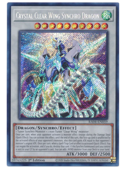 I love these cards! The artwork on Crystal Clear Wing Synchro Dragon is stunning, and having three copies in Secret Rare makes it perfect for my deck. They arrived quickly in great condition—just a tiny off-center print, but that's normal for factory packs. Shipping was smooth, and the seller was clear about potential tariffs for US buyers. Definitely a great addition to any Yu-Gi-Oh! collection!