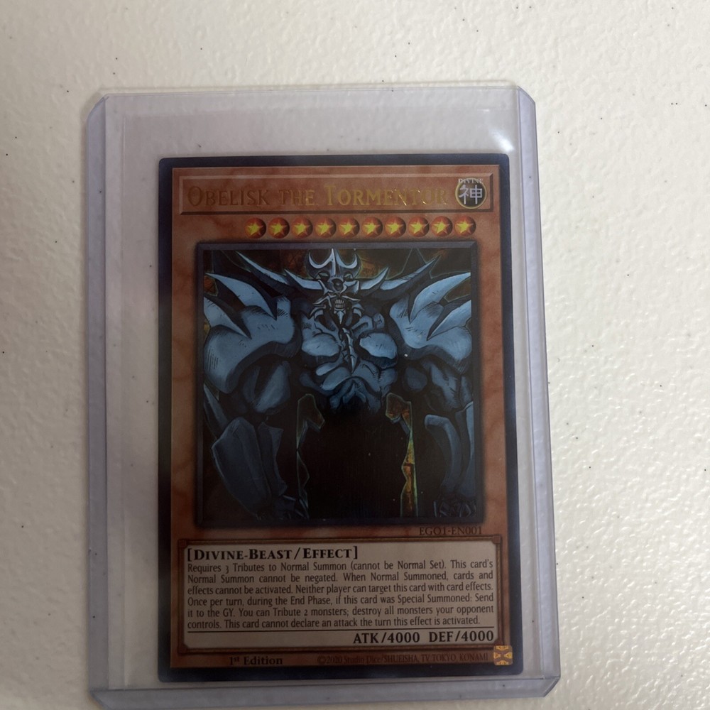 This Obelisk the Tormentor card is a must-have for any Yu-Gi-Oh! collector! The Unlimited Edition Ultra Rare looks stunning, and even ungraded, the condition is fantastic. Shipping was fast and secure with UPS. Perfect for boosting your Egyptian God Deck—totally worth it!
