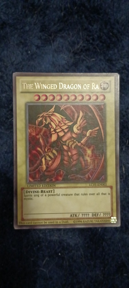 This Yu-Gi-Oh! TCG card is a rare find for collectors and fans alike. The Winged Dragon of Ra, first edition from 1996, is an iconic card that is highly sought after. With its unique abilities and stunning artwork, this card is a must-have for any Yu-Gi-Oh! collection. As a CCG individual card, this item is a valuable addition to the Toys & Hobbies and Collectible Card Games categories. Its condition type and year manufactured are important aspects to consider, making it a great investment for serious collectors. Don't miss out on the opportunity to own this iconic card.